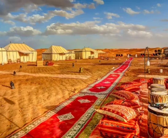 - Three nights of accommodation (Ouarzazate hotel, desert camp, and Merzouga hotel)